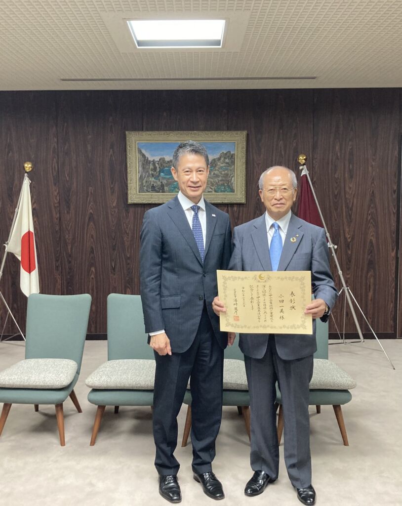 「令和6年度中小企業振興功労者表彰式」で湯﨑県知事より表彰状が伝達されました。