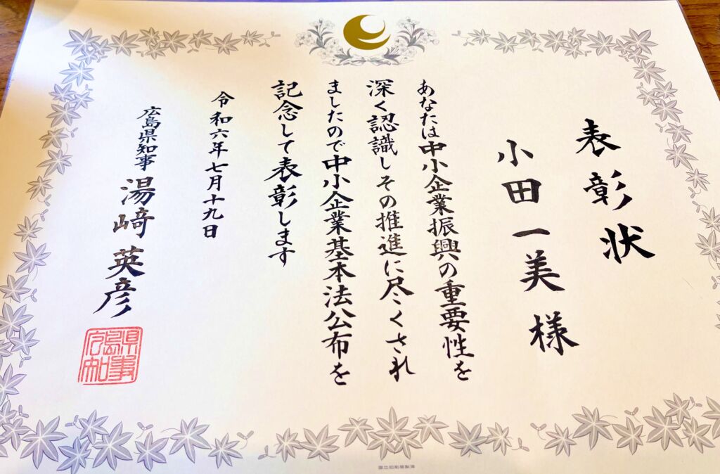 広島県の中小企業振興に著しい功績があった企業経営者や